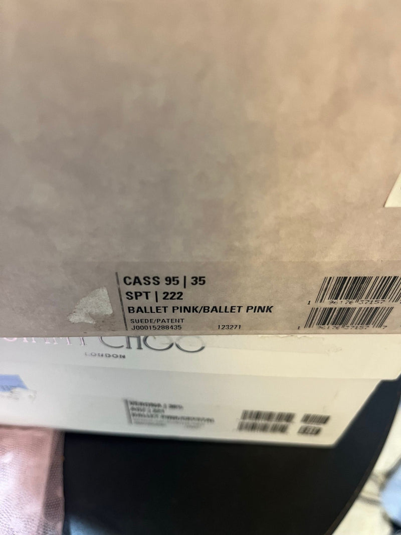 JIMMY CHOO CASS 95 SUEDE AND PATENT LEATHER PUMP