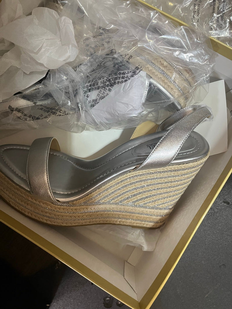 MICHAEL KORS LEIGHTON METALLIC LEATHER WEDGE SANDAL