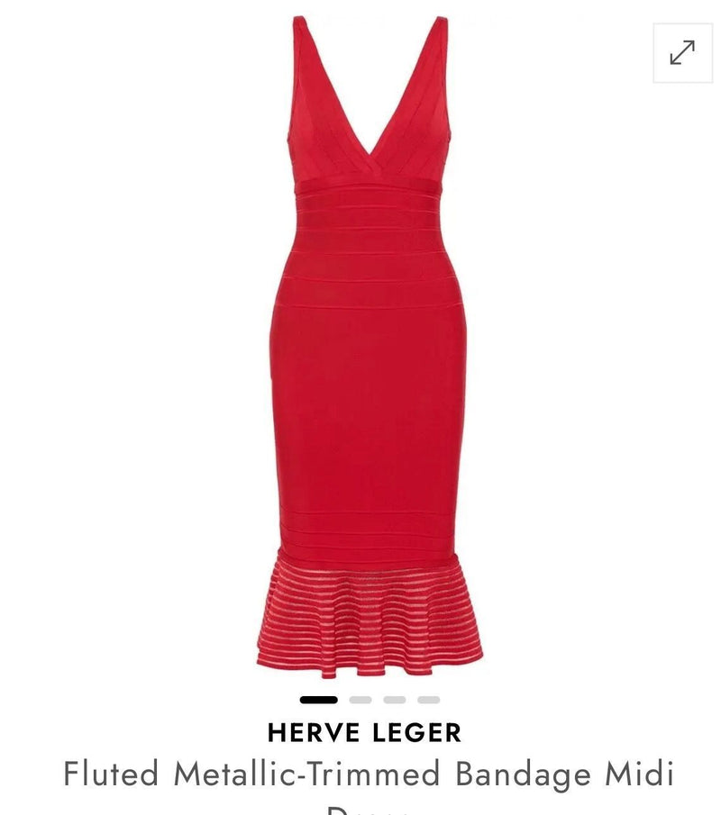 HERVE LEGER RED BANDAGE MIDI DRESS