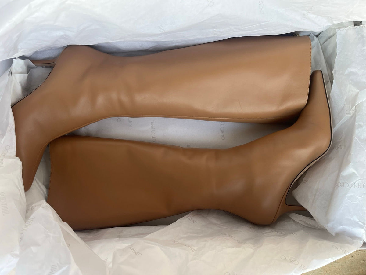 JIMMY CHOO AGATHE 85 LEATHER KNEE-HIGH BOOTS