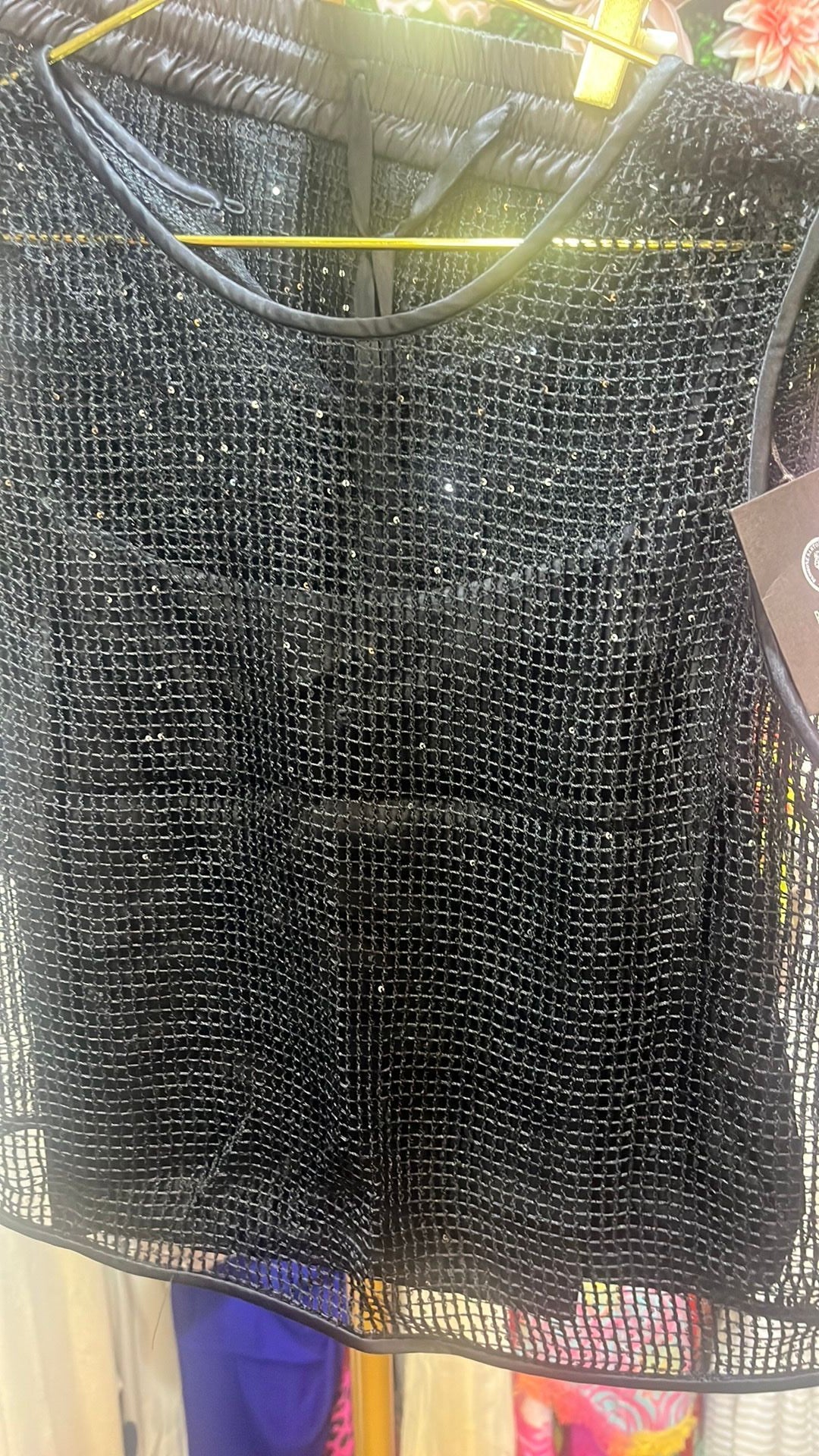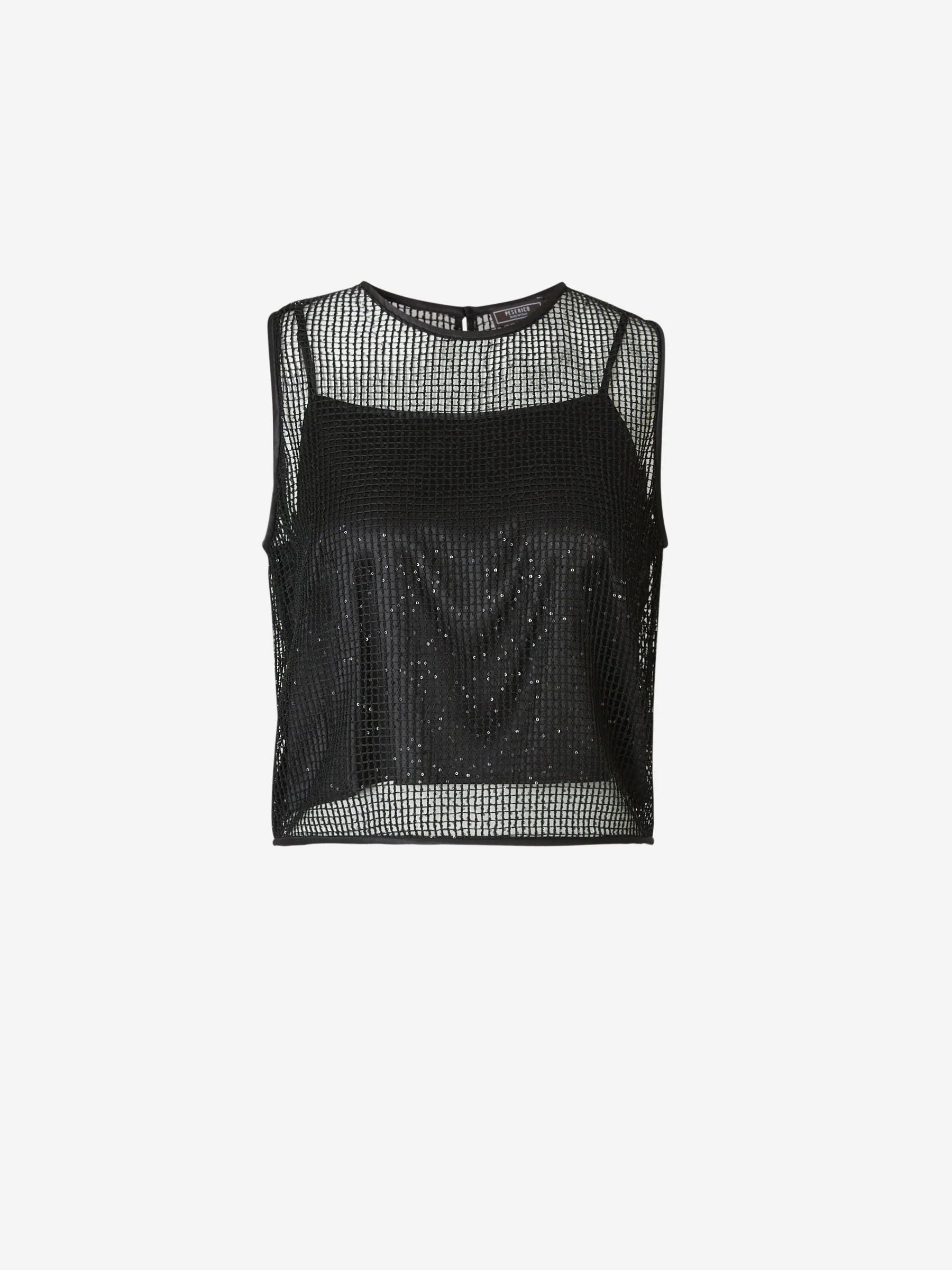 PESERICO OPENWORK MICRO BLACK SEQUIN TANK