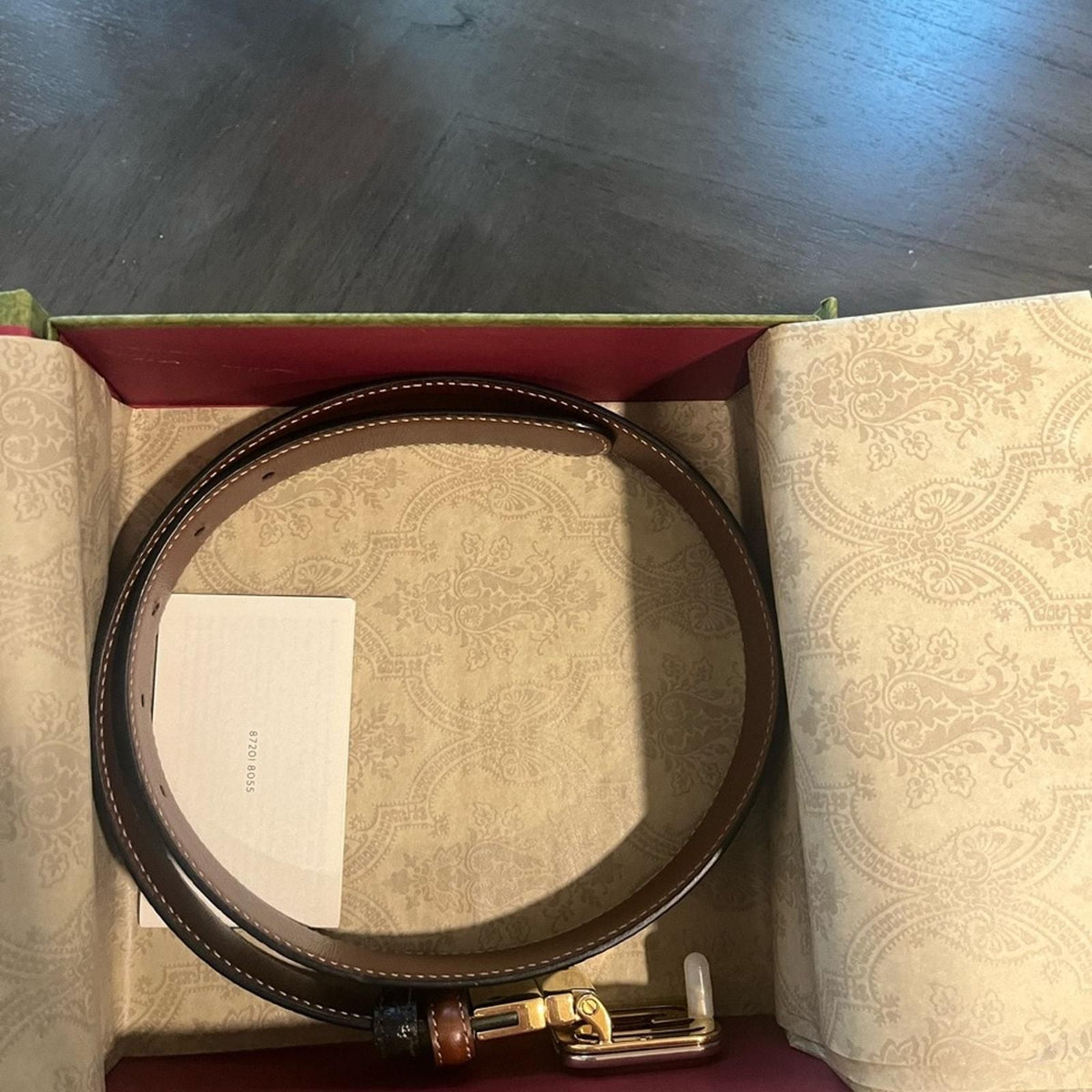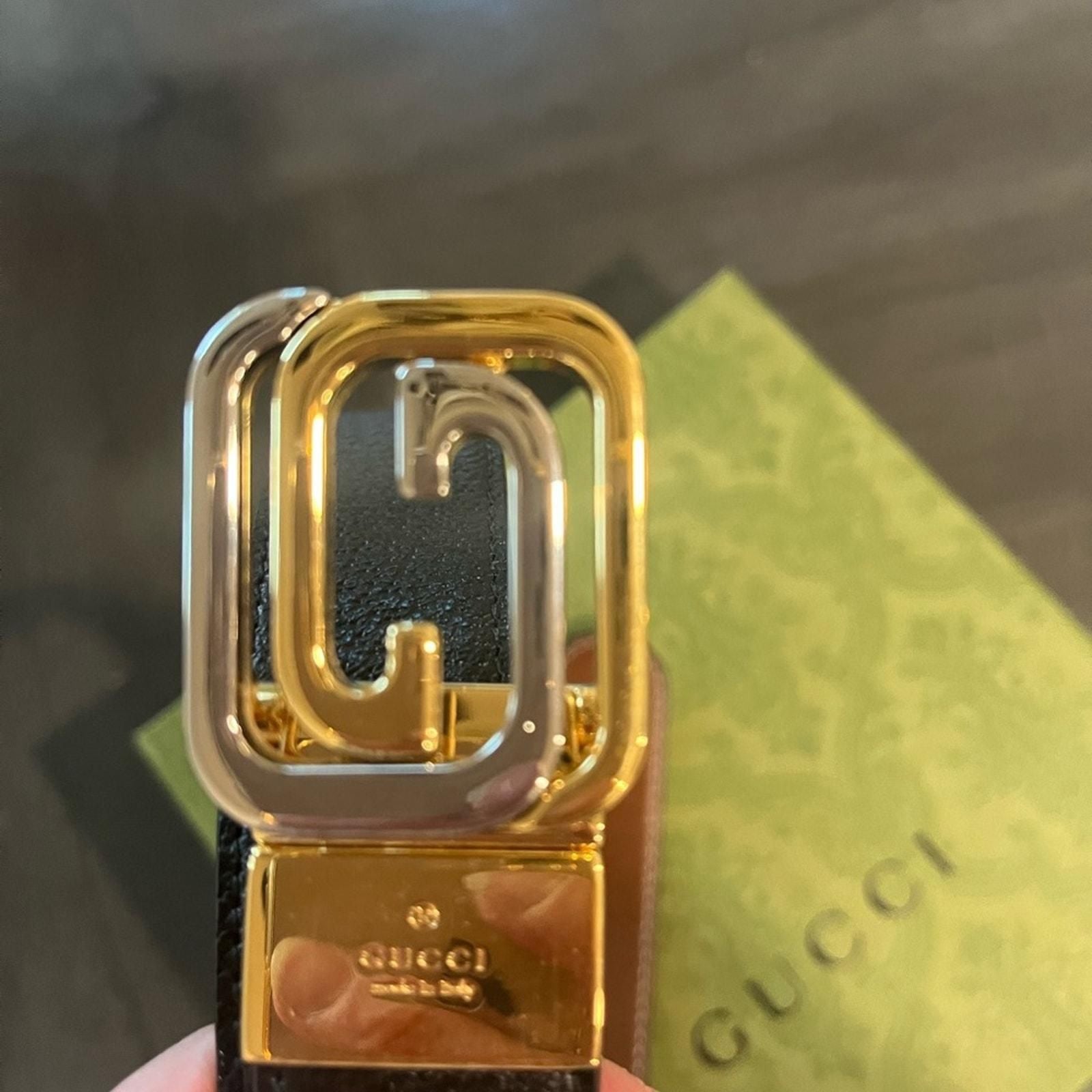 An exquisite Gucci Belt that showcases the brand’s timeless luxury and craftsmanship. This stylish piece features a versatile gold and silver-tone buckle, making it easy to pair with any outfit. Comes as a full set, including the box and papers, perfect for gifting or adding to your designer collection.