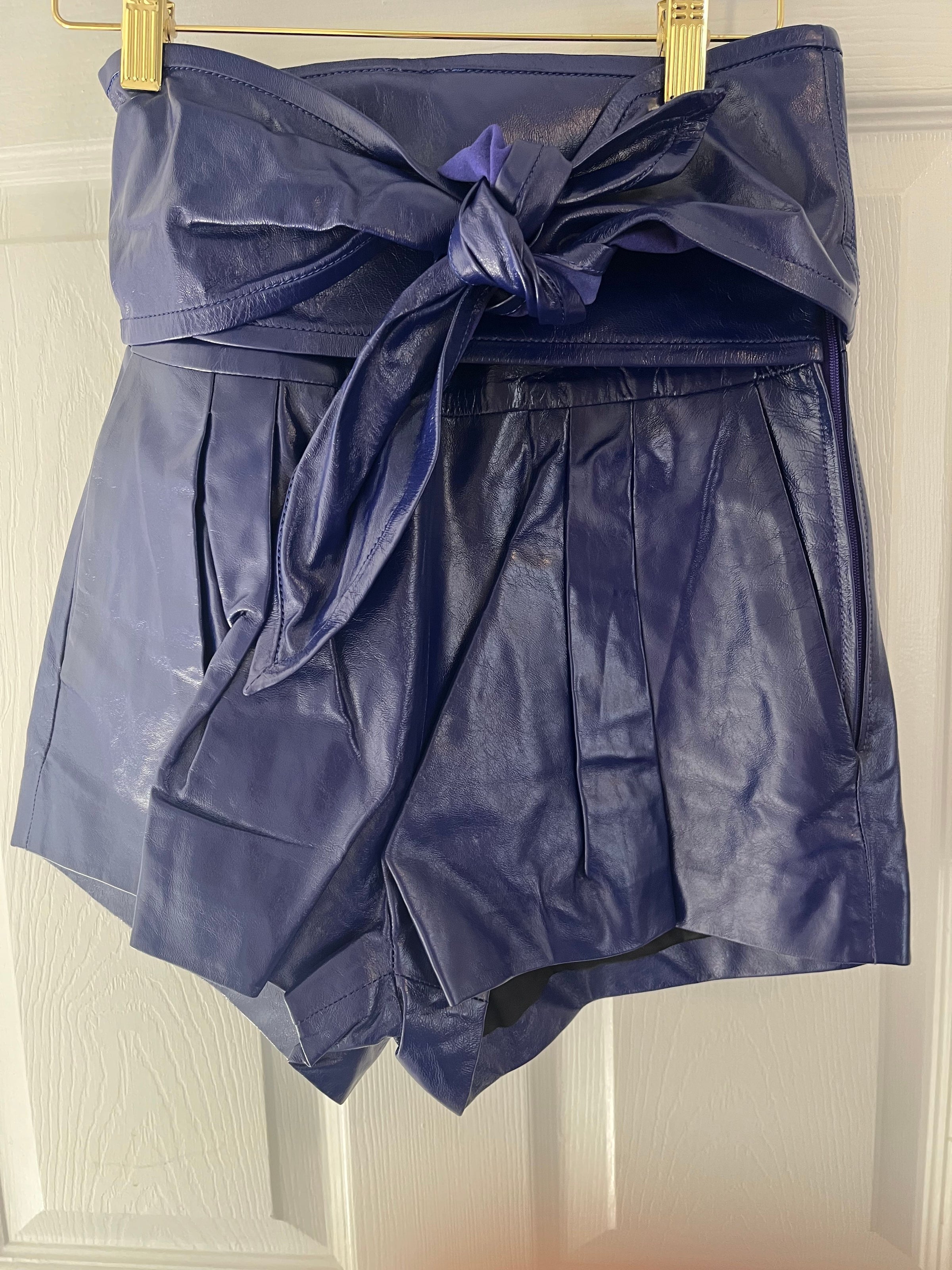 Crafted from luxuriously soft lambskin leather, these IRO shorts embody effortless Parisian edge with modern sophistication. Designed with a high-rise fit and adjustable tie waist, they offer both comfort and a flattering silhouette. Perfect for pairing with a silk blouse or fitted tank for an elevated look.