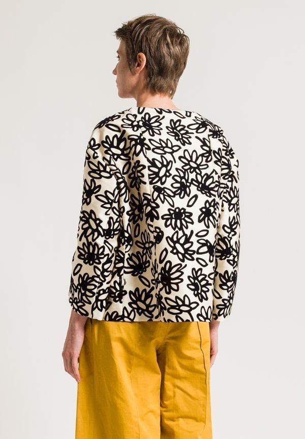 A beautifully textured and patterned piece that embodies Marni’s modern artistic style. Crafted in Italy from 100% polyester with a viscose lining, this jacket features a relaxed fit, button-down closure, and 3/4 sleeves. Functional front breast and slit pockets add practicality to its chic design, while the medium-weight fabric makes it perfect for layering across seasons.