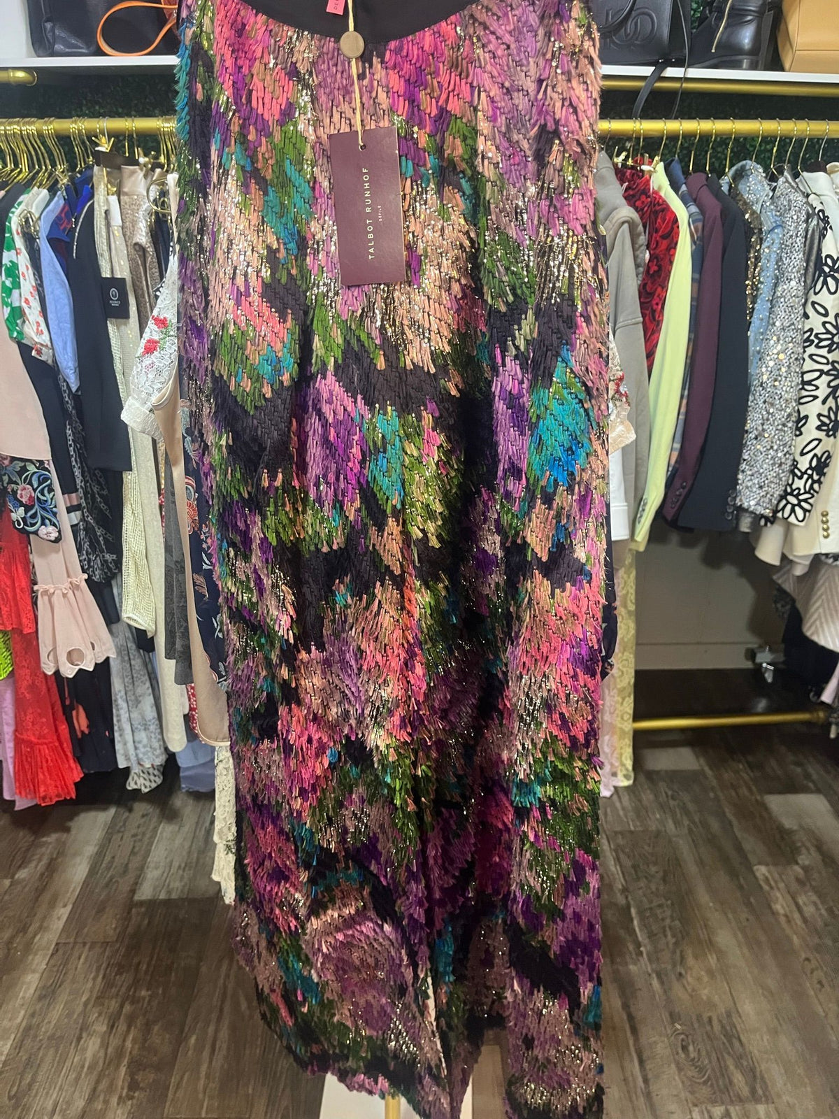 Modern sophistication meets timeless style with these Talbot Runhof Textured Pants. Crafted from high-quality textured fabric, they feature a flattering flare-leg silhouette and a 14” waist, perfect for creating elegant, elongated lines. Ideal for both professional and dressy casual looks.