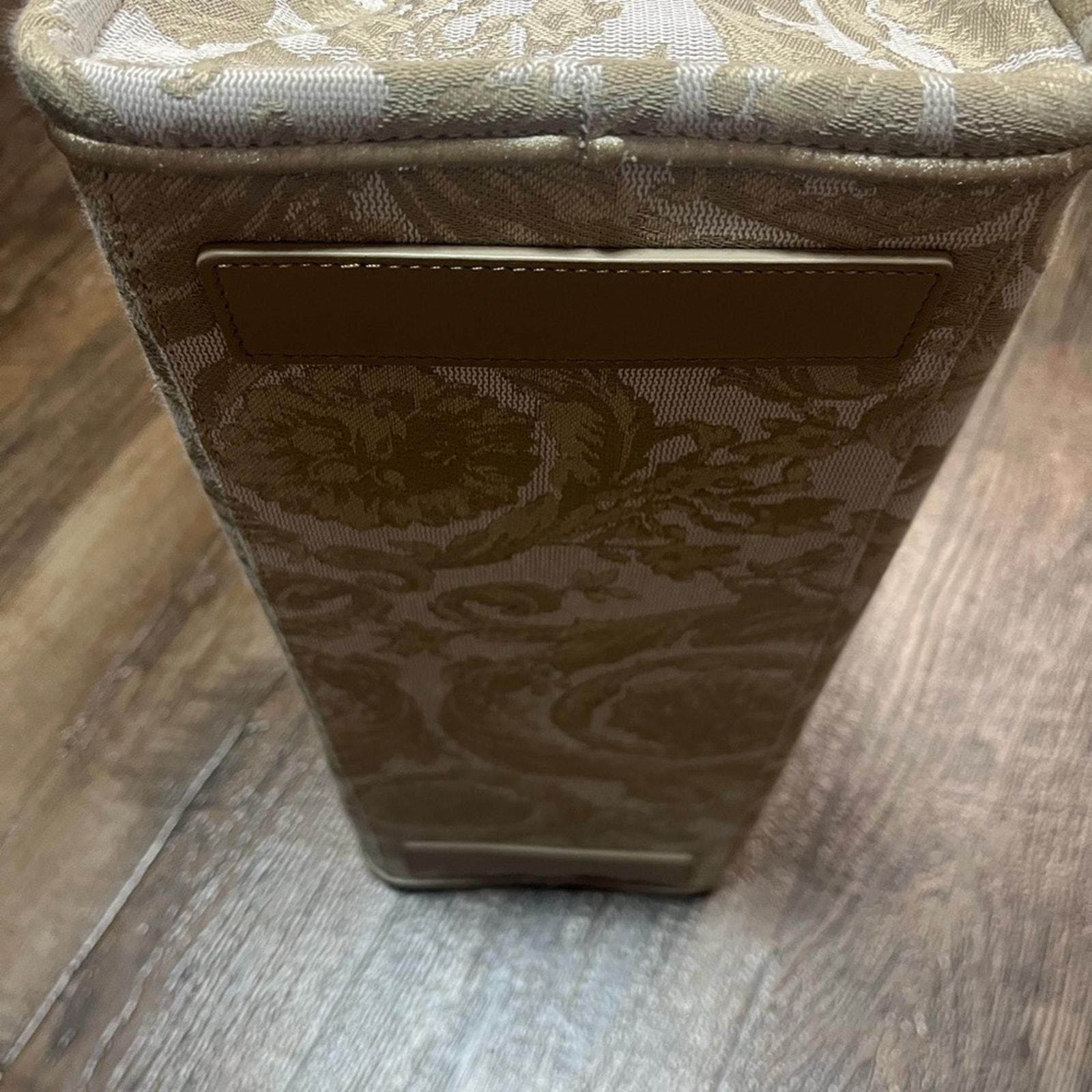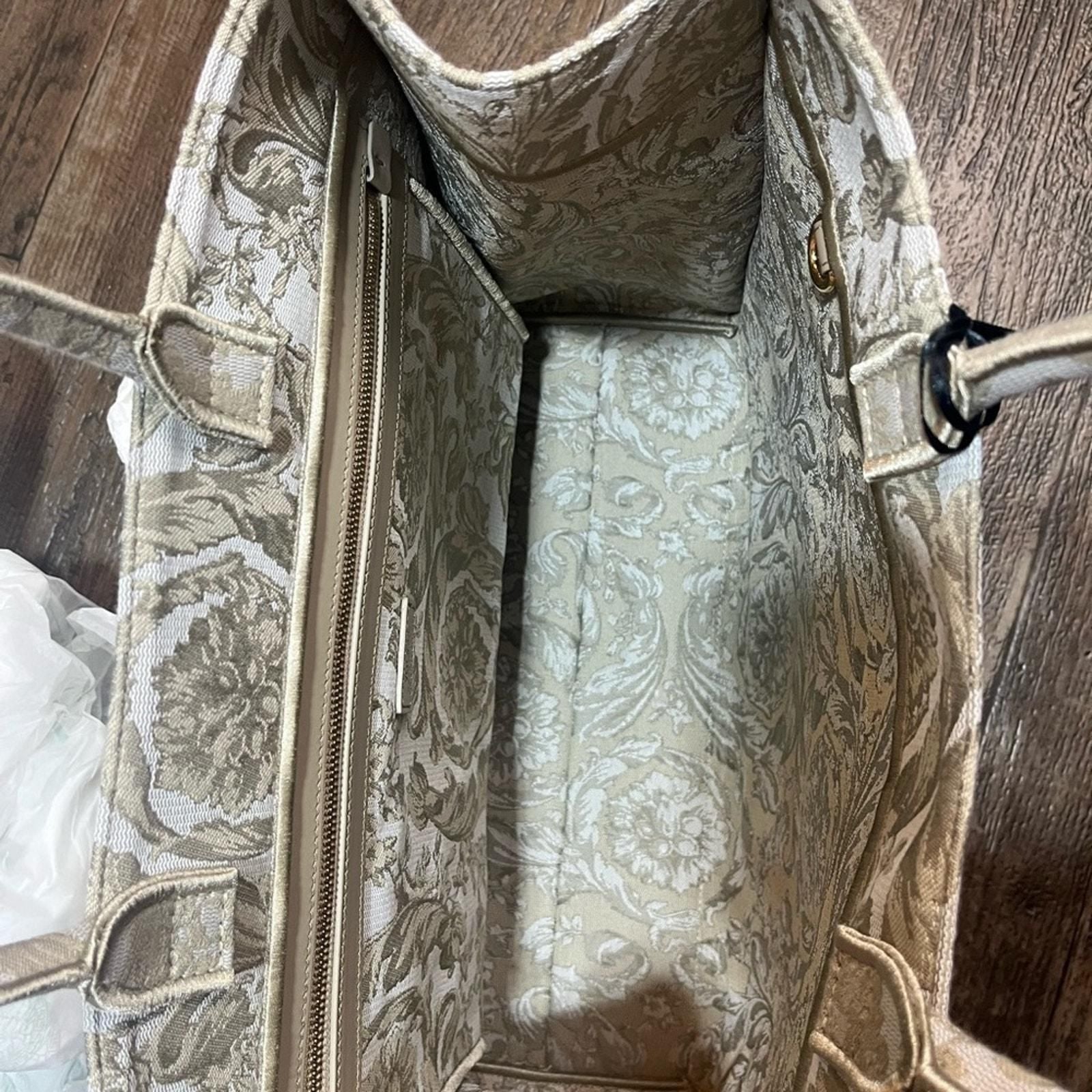 This stunning Versace Athena Tote showcases the brand’s signature bold elegance with a modern twist. Crafted from jacquard Barocco canvas, it features a ‘90s Vintage Logo embroidery and luxurious calf leather trim. Designed for versatility, it includes rigid top handles and a detachable, adjustable crossbody strap for multiple carry options.