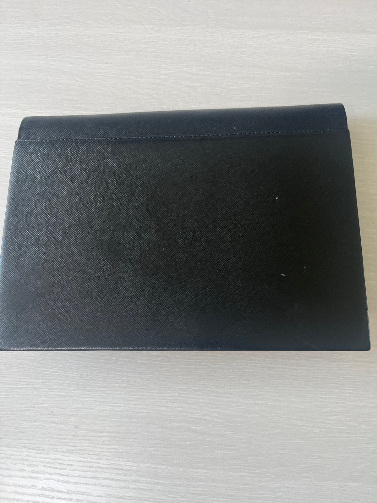 Sleek and elegant, this Yves Saint Laurent clutch is crafted from durable Saffiano leather for a polished, structured finish. Perfect for evening events or sophisticated daytime looks, it combines luxury with practicality.