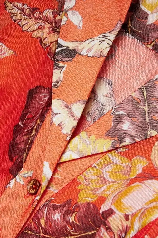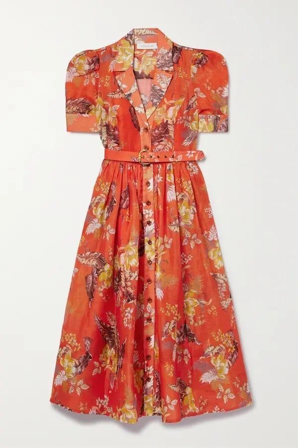 Feminine and timeless, the Zimmermann Matchmaker Midi Dress channels vintage 1950s elegance. Crafted from a luxurious linen and silk blend, it features delicate floral prints, a pointed collar, and softly puffed sleeves. The tonal belt cinches the waist, creating a beautifully balanced, voluminous silhouette. Perfect for garden parties, daytime events, or any occasion that calls for effortless sophistication.