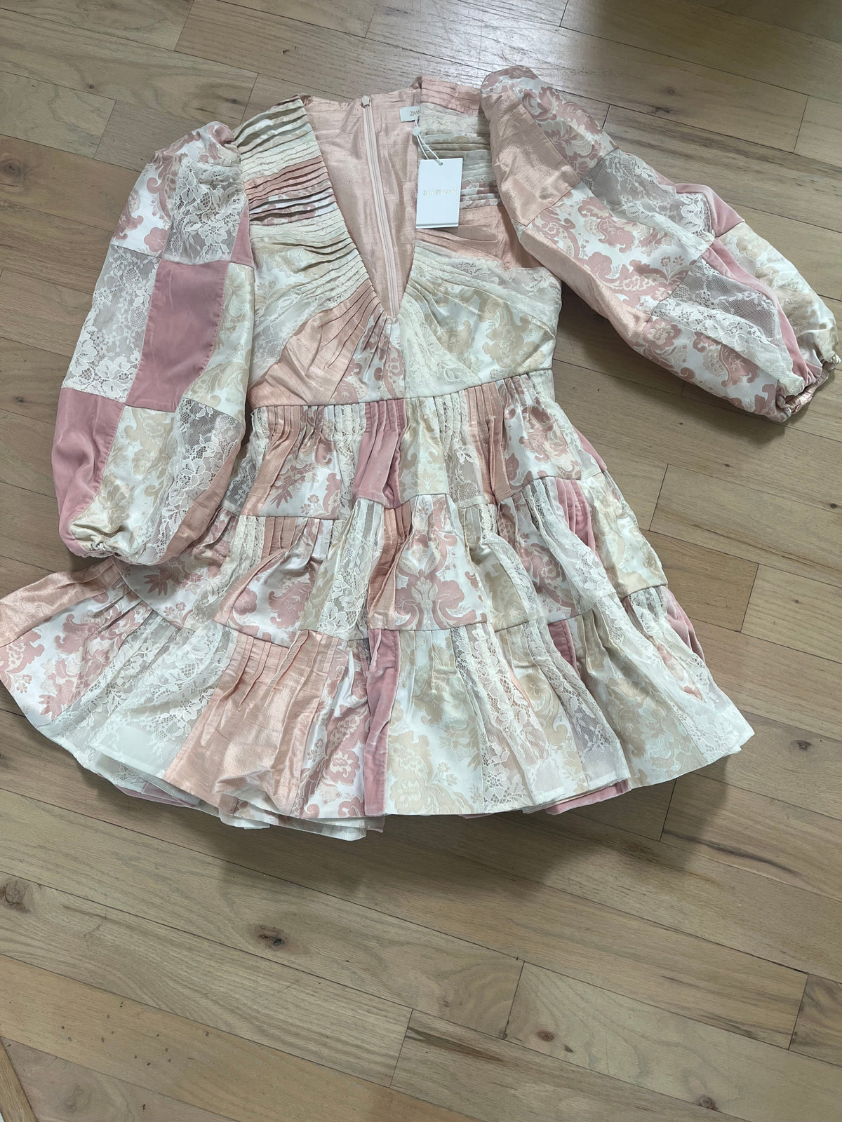 ZIMMERMAN PATCHWORK SILK LACE MINI DRESS